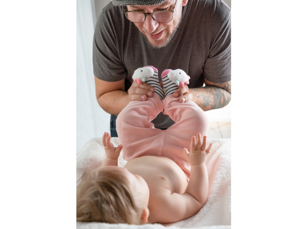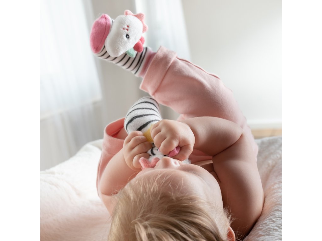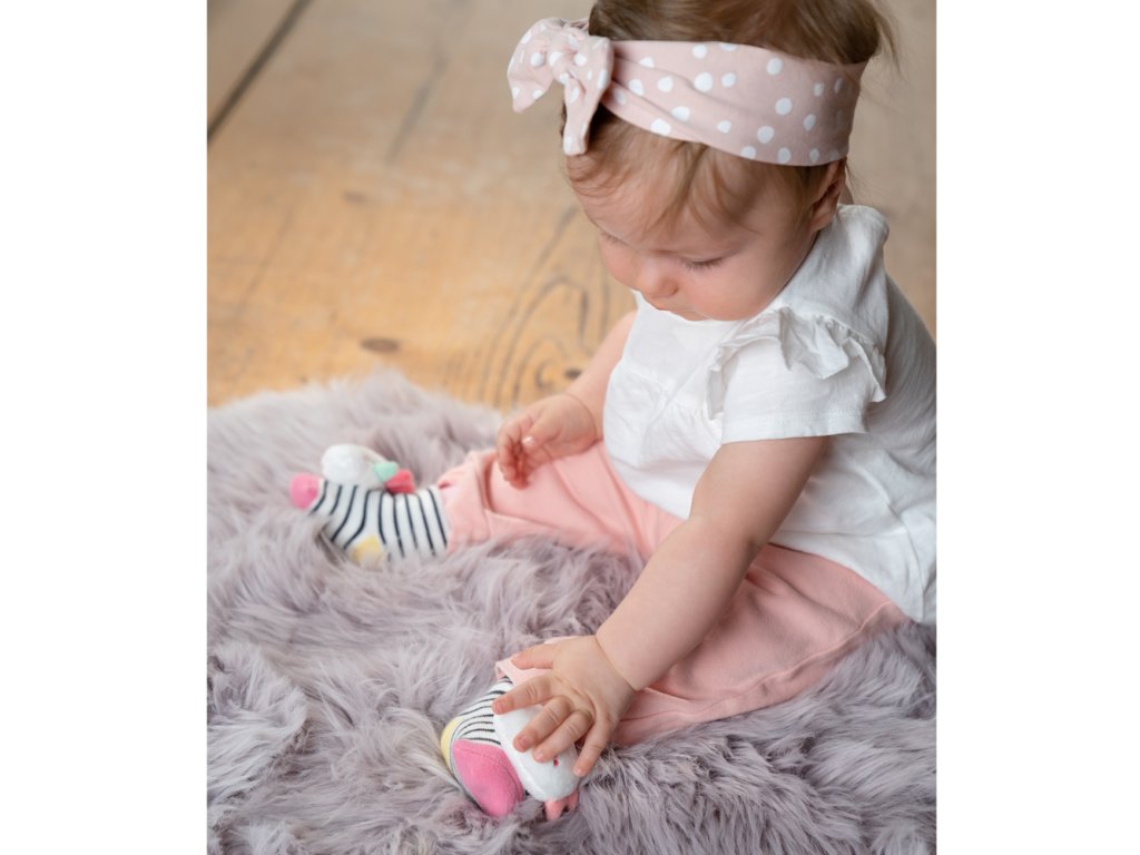 Měkký materiál dětských ponožek se zábavným jednorožcem z kolekce Aiko & Yuki poskytují děťátku příjemné teplo po celý den.Roztomilá hlavička jednorožce při kopání zábavně chrastí a tím povzbuzuje dítě k pohybu nohou. Děťátko tak hravým způsobem trénuje své smysly a motoriku.
