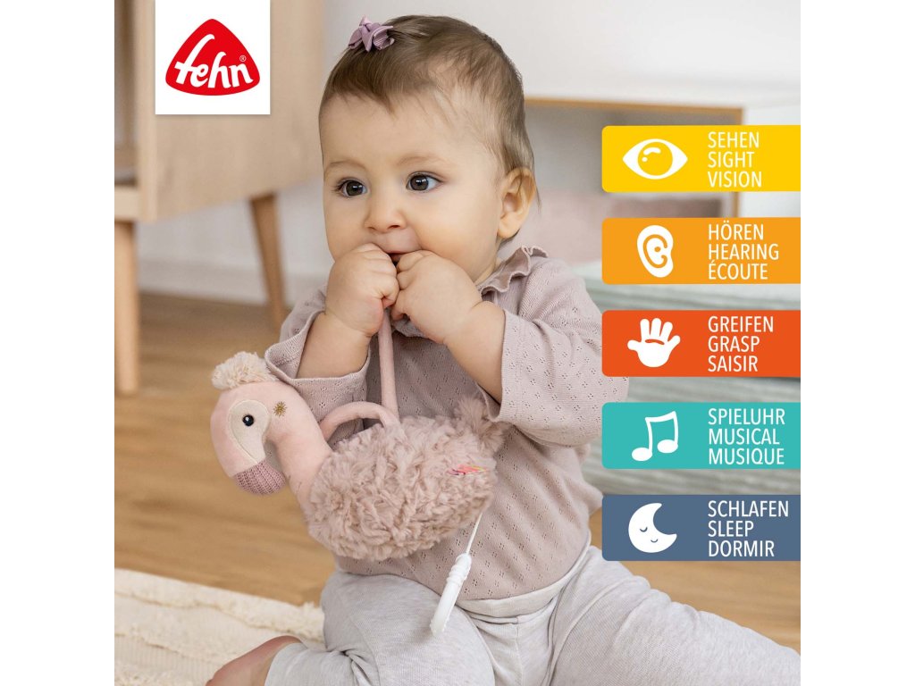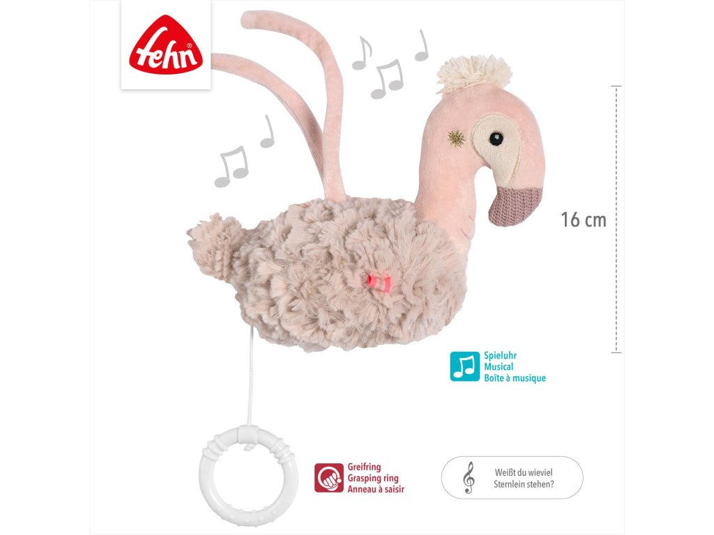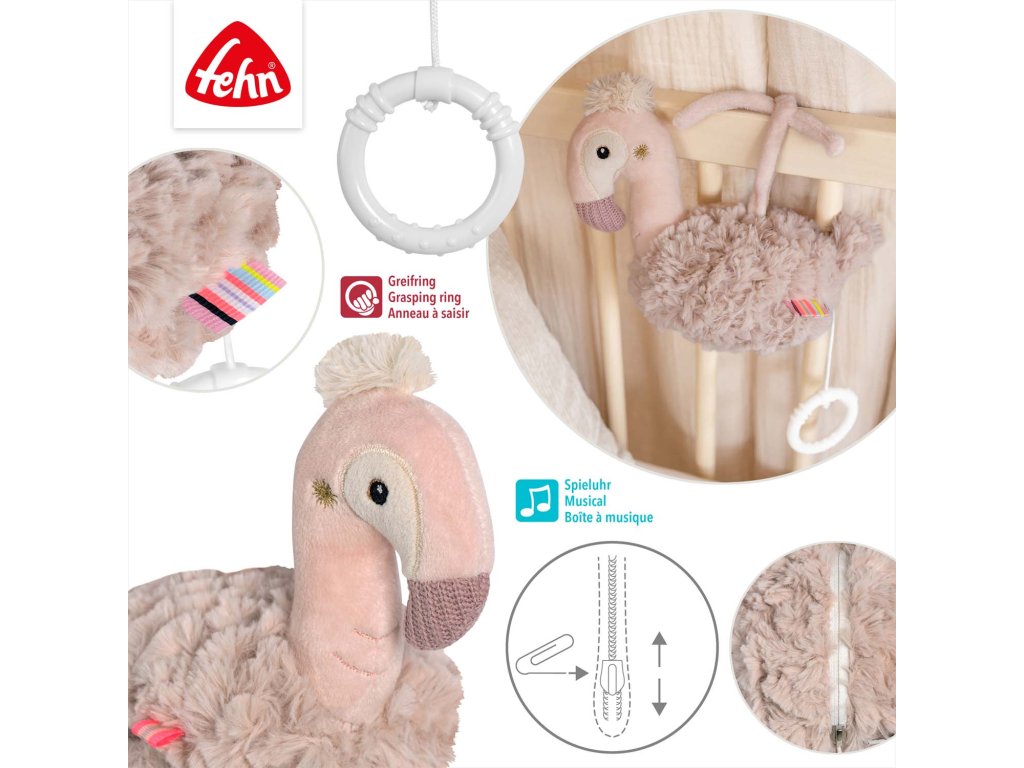 Mazlíček a pomocník při usínání. Natahovací hrací strojek s příjemnou melodií uklidní v každé situaci miminka už od narození i batolata.Mazlivý plameňák z kolekce Lazy, Crazy & Pink není jen věrným společníkem, ale také poskytuje útěchu a uklidnění přehráváním konejšivé ukolébavky. Díky praktické velikosti a upevňovacím páskům si můžete plyšového plameňáka vzít kamkoli s sebou. Ihned se stane nejlepším kamarádem vašeho děťátka, které si ho zamiluje a bude se s ním mazlit.