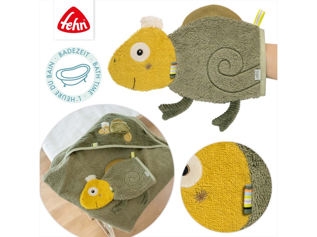 Žínka na mytí s motivem zvířátka pro veselé koupání – savá a hebce měkká – pro miminka a děti od 0+ měsíců.Tato roztomilá žínka s motivem chameleona z kolekce Lazy, Crazy & Pink zaručuje maximální zábavu při koupání díky měkkému materiálu a hravým detailům. Každodenní mytí se stane potěšením pro každé miminko. Žínku lze používat nejen při koupání, ale také jako maňáska – jednoduše si ji navlékněte na ruku a chameleon rázem ožije. Hebké froté je mimořádně šetrné k dětské pokožce a čistí jemně a zábavně zároveň.