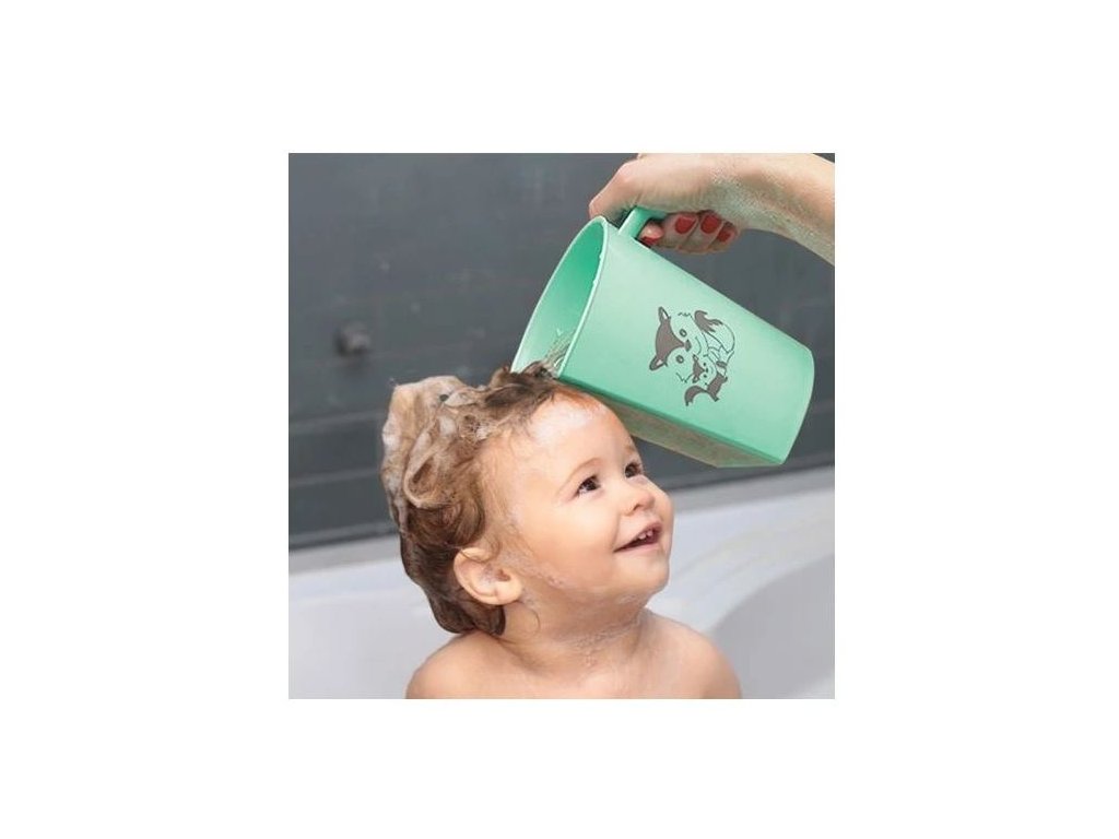 Náš hrnek na mytí hlavy jsme vybavili měkkým a pružným okrajem, který perfektně sedne na čelo vašeho dítěte. Díky tomu si při oplachování vlasů můžete být jisti, že se mu do očí nedostane ani kapka vody.
