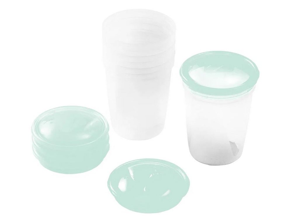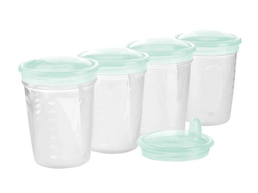 Sada nádobek s náustkem pro skladování, zmrazování a krmení. Nádobky jsou vhodné na všechny druhy jídel a nápojů, včetně mateřského mléka. Díky náustku je možné nádobku použít jako hrneček na pití. Těsná víka poskytují ochranu před rozlitím a pronikáním pachů. Odměrka umístěná na nádobkách umožňuje přesné měření potravin. Nádobky jsou vyrobeny ze speciálního materiálu určeného pro styk s potravinami, který neobsahuje Bisfenol A.