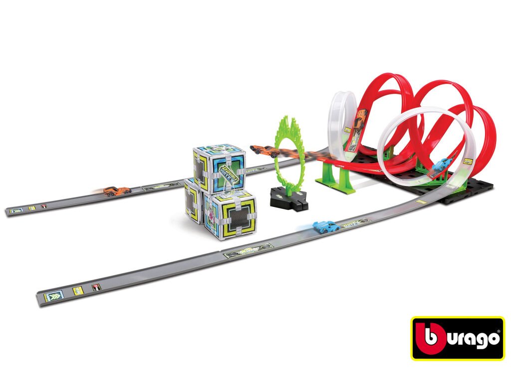 Parádní autodráha se smyčkami a dvěma paralelními startovacími dráhami.