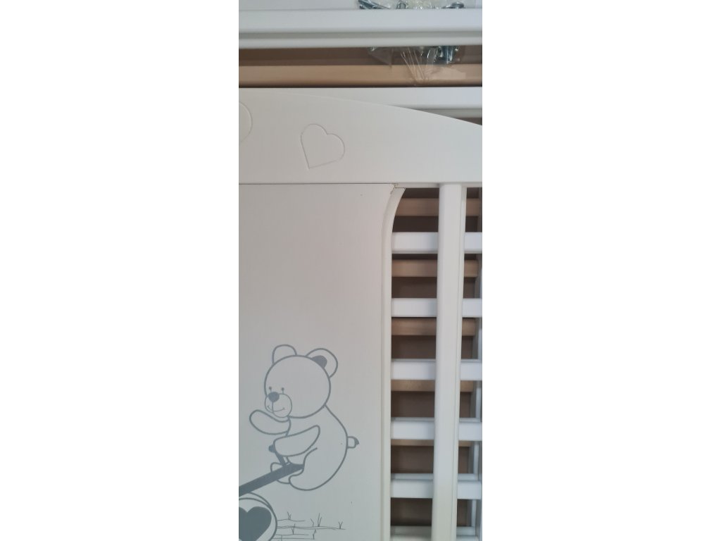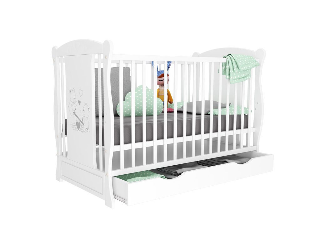 Bobas dětská dřevěná postýlka Máša, medvídek bílá - II. jakost