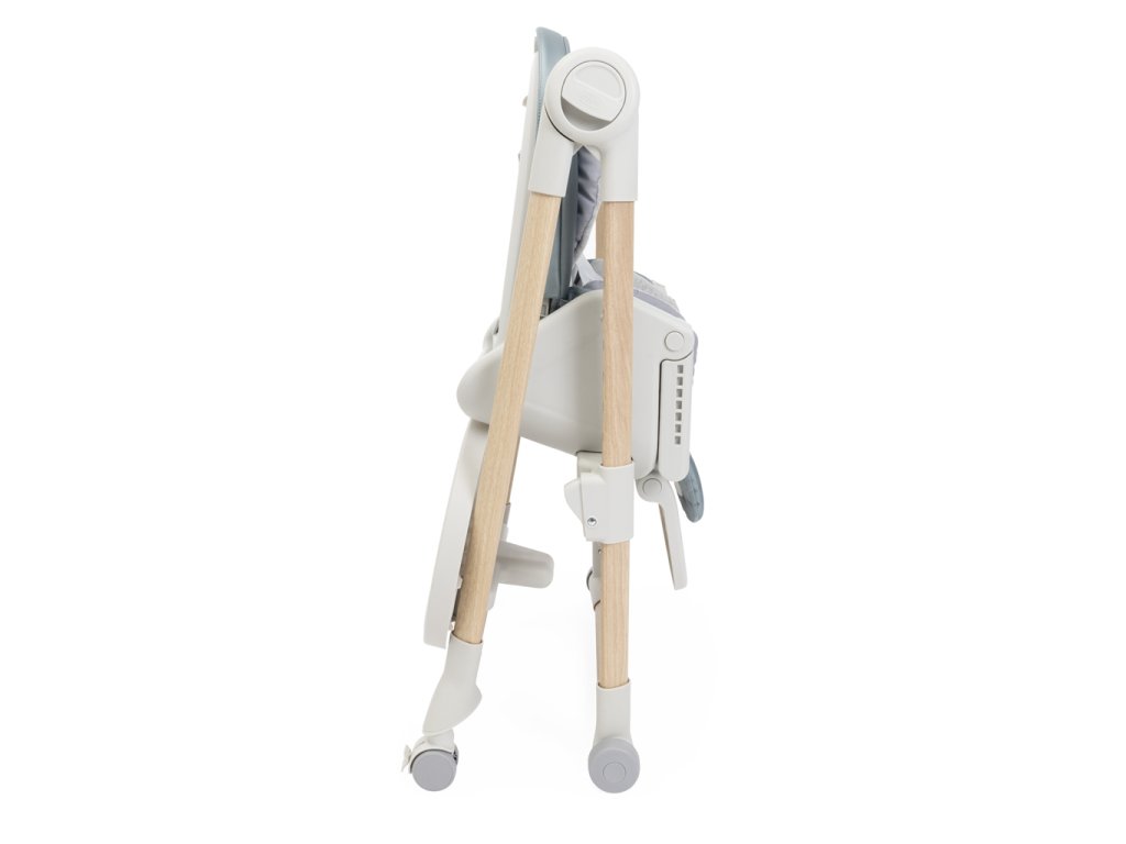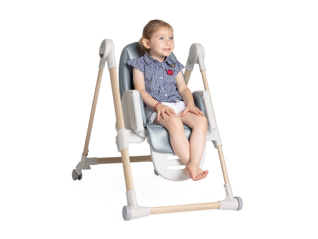 Jídelní židle lze výškově nastavit do 9 různých pozic a přizpůsobí se tak výšce, kterou aktuálně potřebujete. Má 4 kolečka díky kterým umíte židli prakticky přesouvat. Opěrka zad lze nastavit do úplného lehu. Opěrka nožiček je rovněž nastavitelná pro naprostý komfort dítěte.
