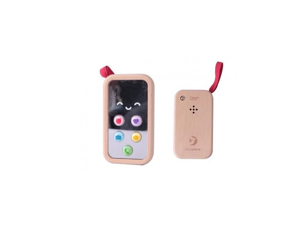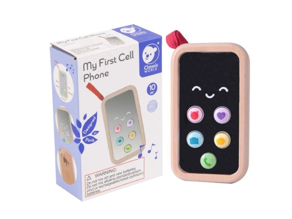 Stačí stisknout tlačítko a dětský mobilní telefon se rozezní. Tato hudební hračka nadchne každého malé dítko, které už zvědavě pokukuje po vašem mobilu. Hrající dřevěný mobil zabaví děti na celé hodiny, děti s nadšením mohou mačkat tlačítka, hrát si na to, že někomu telefonují nebo někdo telefonuje jim. S vlastním dětským telefonem (mobilem) se děti budou cítit dospěle a důležitě. Dřevěná hračka - mobilní telefon pomáhá rozvíjet motorické dovednosti, koordinaci očí a rukou, zručnost prstů, umožňuje dětem hrát role.
