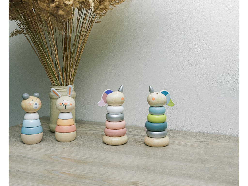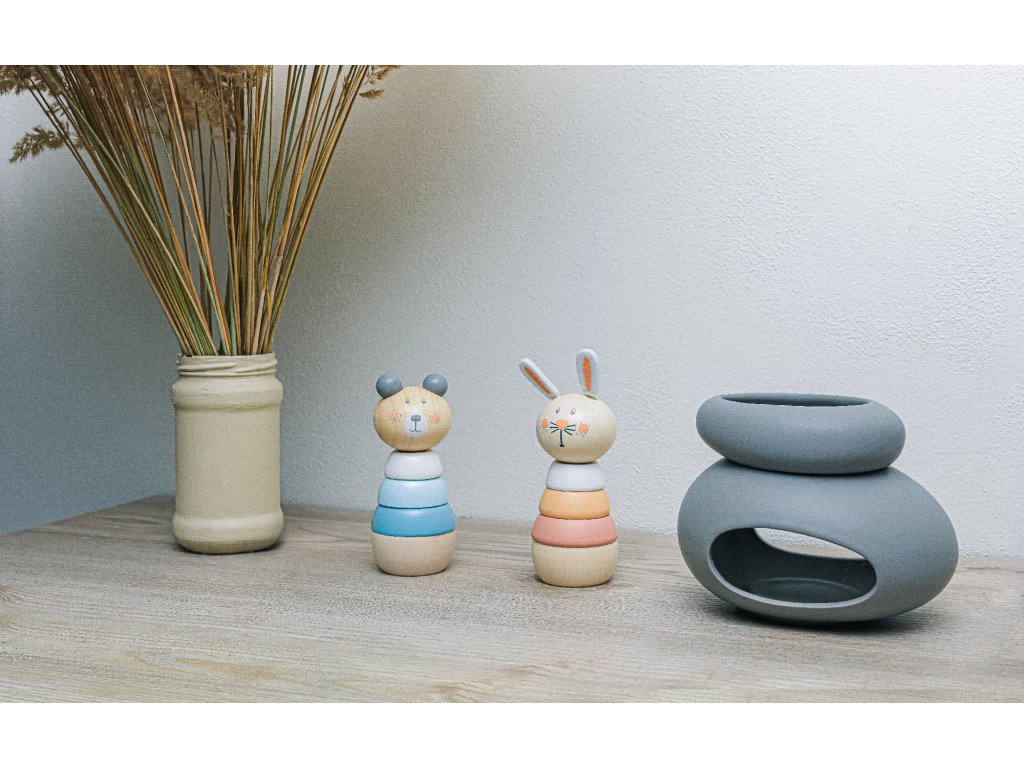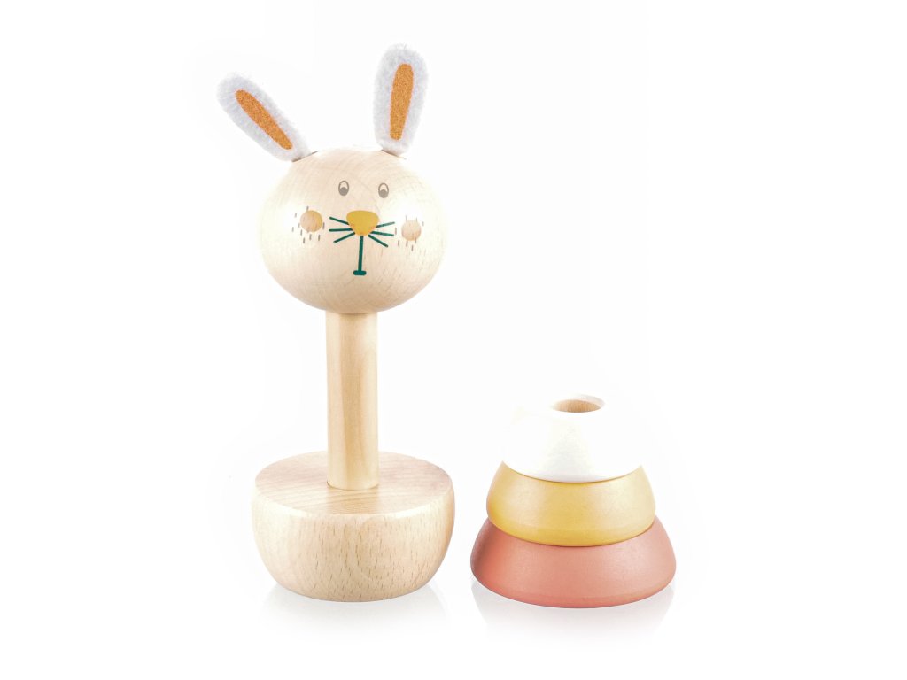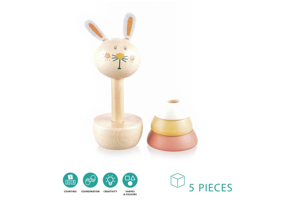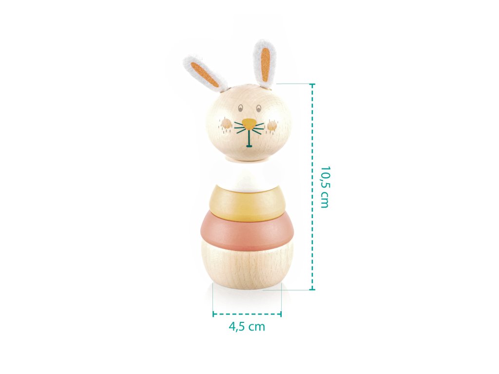 Zabavte dítě na dlouhé hodiny! Nasazovací hračka králík je sada vyrobená z dřevěných kousků, které se rozloží a opětovně nasazují. Roztomilý design králíčka dítě zaujme a pomůže mu hravou formou rozvíjet motoriku a prostorové myšlení.