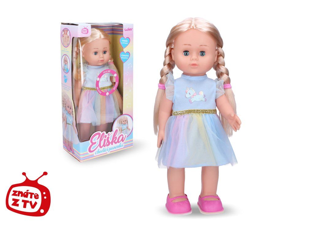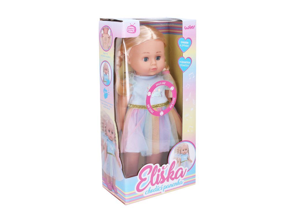 Eliška je chodící panenka, která mooc ráda zpívá! Chceš si s ní zazpívat? Umí 7 lidových písniček. Stačí tlesknout a přidej se!