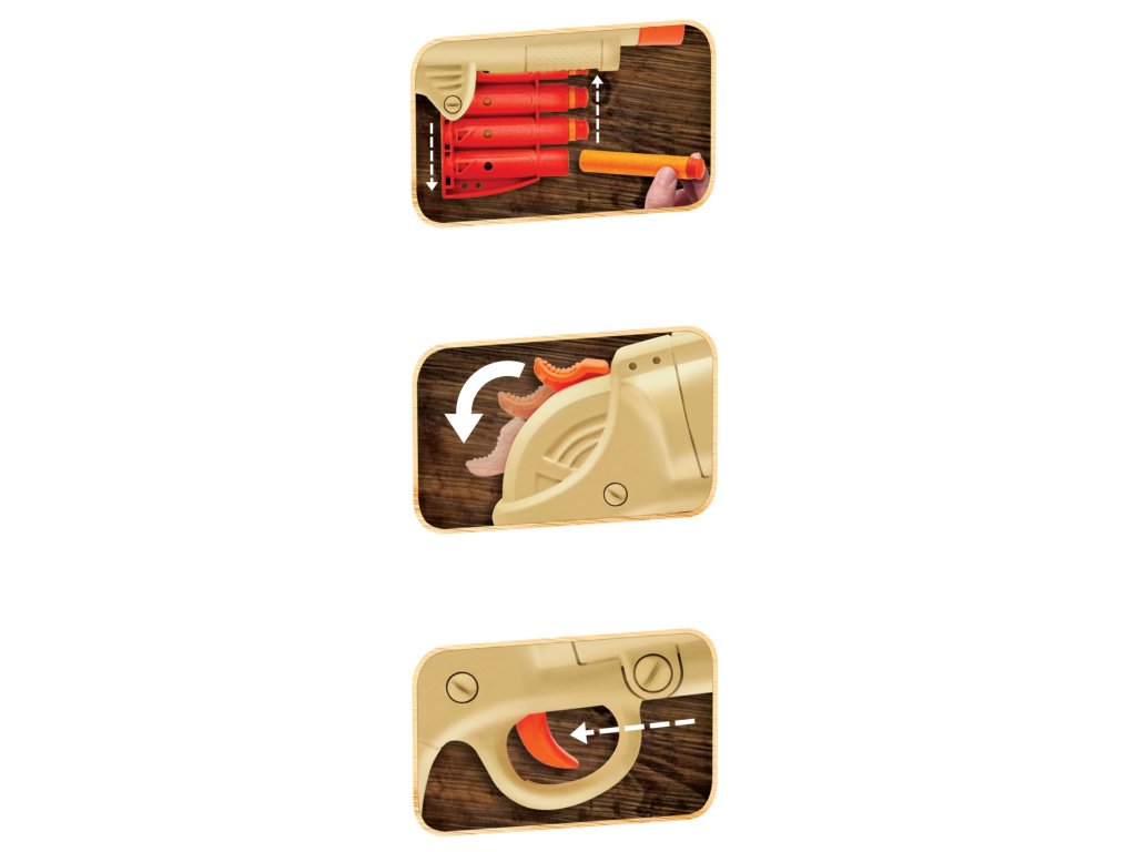 Dostřel až 18m. Obsah balení - pistole, zásobník na 6 střel, 9 pěnových střel. Natáhnutím kohoutku v zadní části zbraně se zásobník posune na další střelu, stiskem spouště zbraň vystřelí.Doplňkové parametry