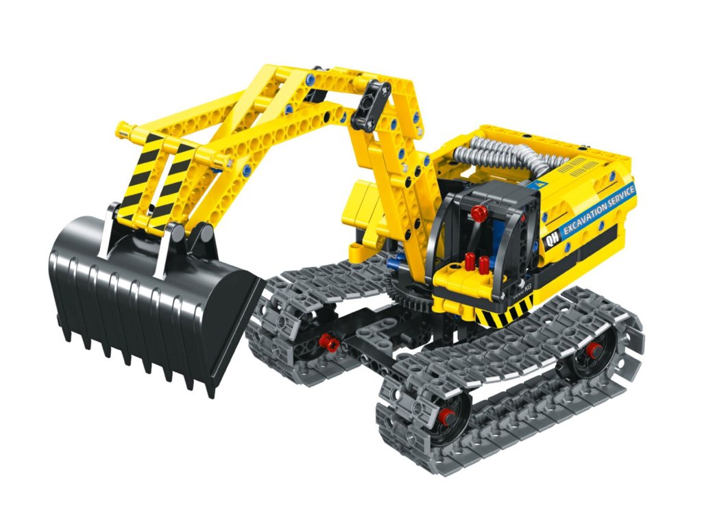 Možnost postavit bagr nebo robota. Otáčecí základna a pohyblivé nabírací rameno.