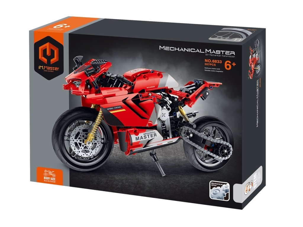 Postavte si detailní model červené motorky ze stavebnice iM.Master. Model o rozměrech 32,2 × 10 × 16,6 cm se skládá z 557 dílků a potěší každého fanouška stavebnic a jednostopých strojů. Díky propracovaným funkcím, jako je otáčecí zadní kolo s řetězem a fungující zadní tlumič, působí motorka realisticky a stavění je ještě zábavnější.