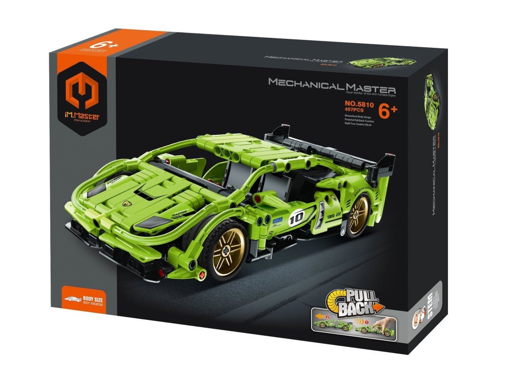 Postavte si stylové zelené závodní auto iM.Master ze 457 dílků a užijte si jízdu se zpětným natažením. Model o rozměrech 25 × 11,4 × 6,6 cm nabízí kromě zábavného stavění i realistické funkce – včetně otevíracích dveří.