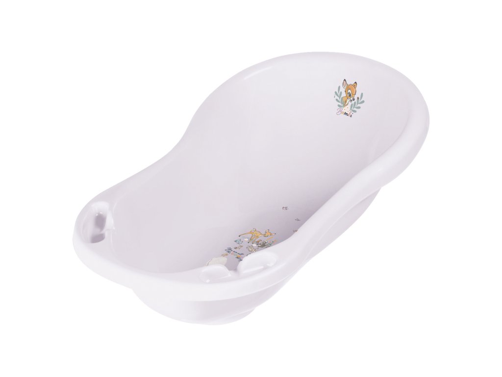 Ergonomická vanička pro děti od 0 do 12 měsíců s motivem Bambi – bezpečná a pohodlná zábava při koupání. Díky praktické gumové zátce můžete vaničku po koupání snadno a bezpečně vyprázdnit.
