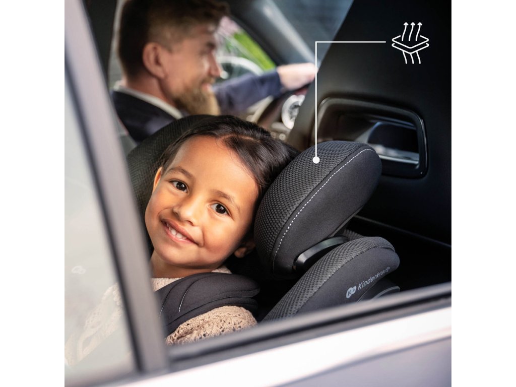 Umožňuje jednou rukou nastavit výšku opěrky hlavy a pásů (6 úrovní). Široké, hluboké sedátko a měkce polstrované materiály zvyšují komfort. Součástí je také vyjímatelná vložka pro děti do 60 cm – zajišťuje lepší usazení a vyšší bezpečnost novorozenců.