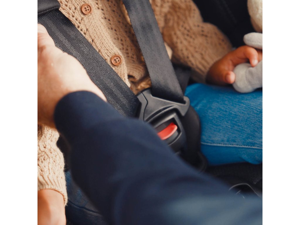 Vnitřní 5-bodové pásy mají protiskluzové vložky a na bocích sedačky se nacházejí háčky pro jejich zavěšení. Sedačka je vybavena nesklápěcí sponou, která usnadňuje připoutání dítěte.
