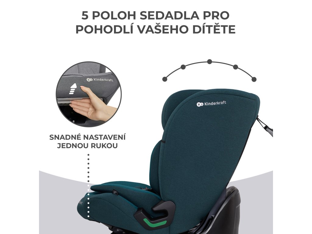 Autosedačka je integrována s podnoží a umožňuje vám nastavit úhel sklonu vůči pohovce, což zvládnete udělat jednou rukou a to po celou dobu jejího používání. Autosedačku si jednoduše nastavíte do jedné z 5 poloh. To ovlivňuje nejen pohodlí při cestování, ale také bezpečnost dítěte.