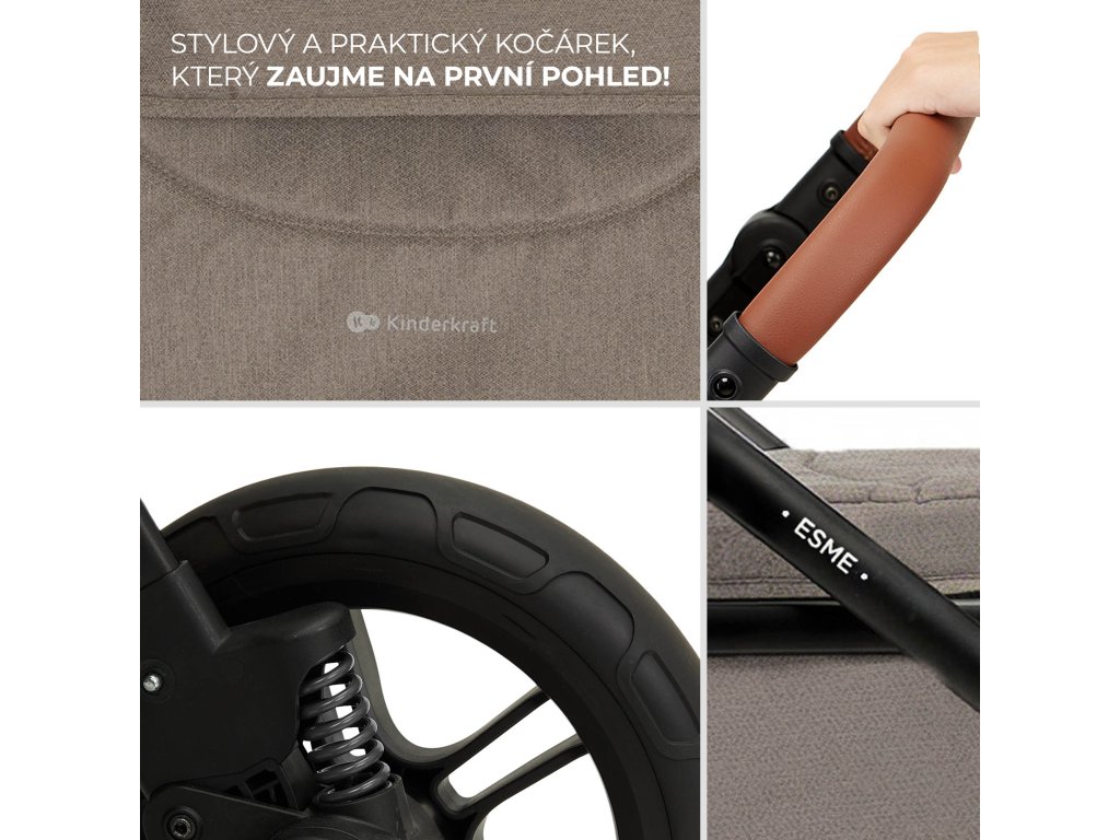 ESME je multifunkční dětský kočárek 3 v 1, který vás okouzlí svou funkčností a elegancí. Zaujmete pozornost krásným, moderním designem – decentní barevné provedení a pečlivě zpracovaný rám zajistí, že si každodenní procházky s dítětem zamilujete ještě víc. Kočárek oceníte také díky velké vaničce s ventilačním panelem, kterou ve třech jednoduchých krocích přeměníte na sportovní sedadlo. Toto řešení 2 v 1 vám ušetří místo při skladování jednotlivých částí.
