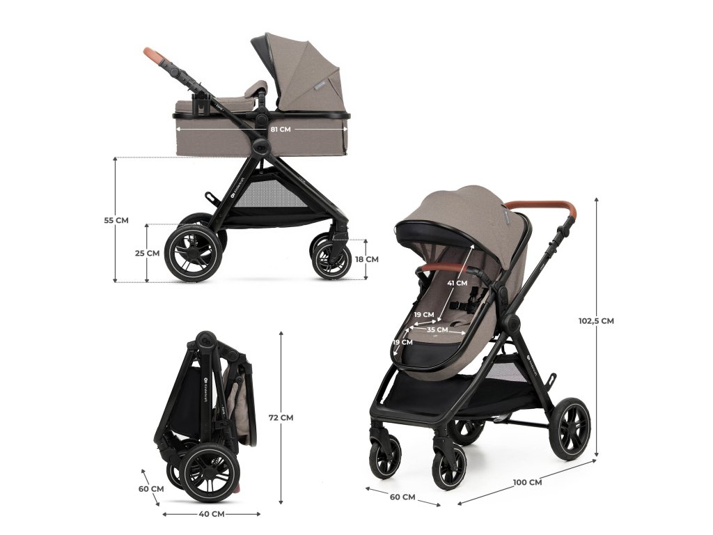- Rozložený kočárek: 100 × 60 × 102,5 cm