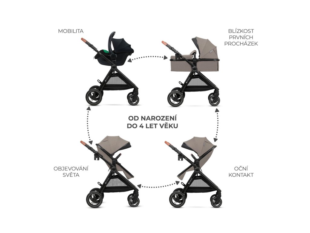 Praktické sedátko 2 v 1 umožňuje rychlou a jednoduchou přeměnu vaničky na sportovní verzi. Stačí tři kroky a kočárek pro novorozence se přemění na kočárek pro starší dítě. Nemusíte hledat zvláštní místo pro skladování další části, kdy dítě z vaničky vyroste.