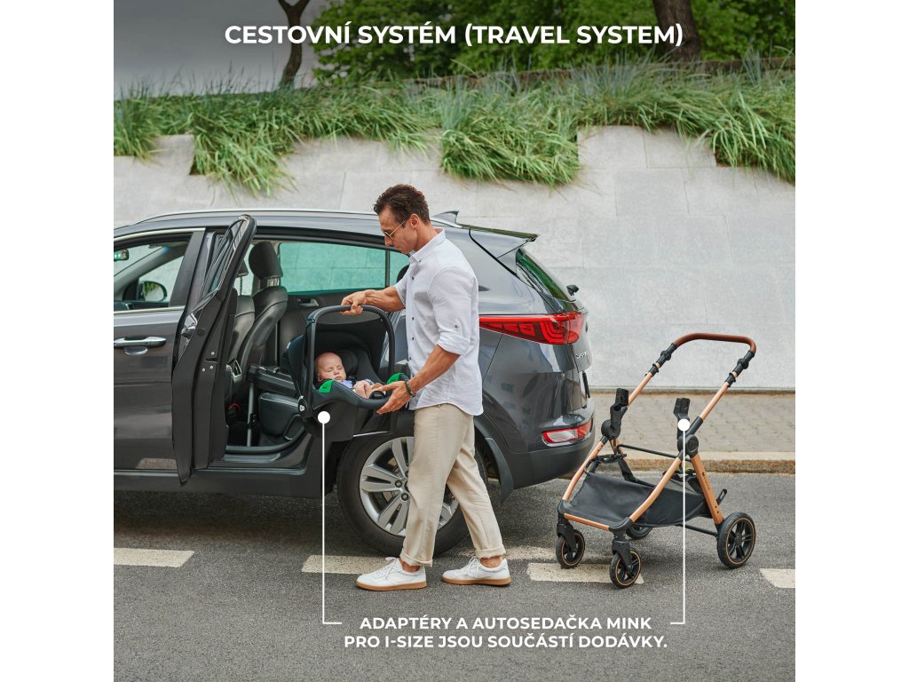 ESME je navržen tak, aby vám usnadnil společné procházky i cestování. V balení proto naleznete adaptéry a autosedačku MINK PRO 2 i-Size – díky nim vytvoříte TRAVEL SYSTEM, který oceníte na cestách. Dítě usnulo v autě? Žádný problém: vyjměte autosedačku, nacvakněte ji na rám kočárku – a můžete pokračovat! Autosedačka MINK PRO 2 i-Size je model RWF (proti směru jízdy) pro nejmenší děti. O bezpečnost pasažéra se starají pokročilé systémy jako H-GUARD+ a SPS+. Poloha RWF je navíc až 5× bezpečnější než poloha po směru jízdy.