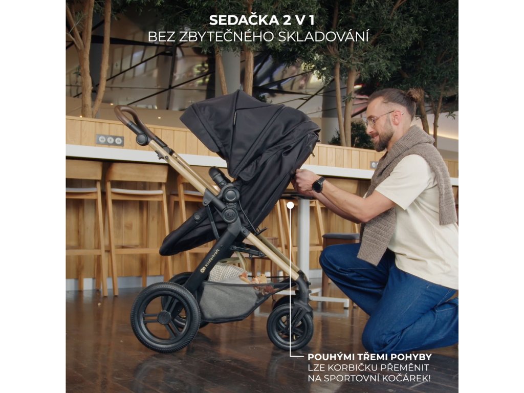 - Transformovatelné sedadlo 2 v 1: snadná změna z korby na sportovní kočárek