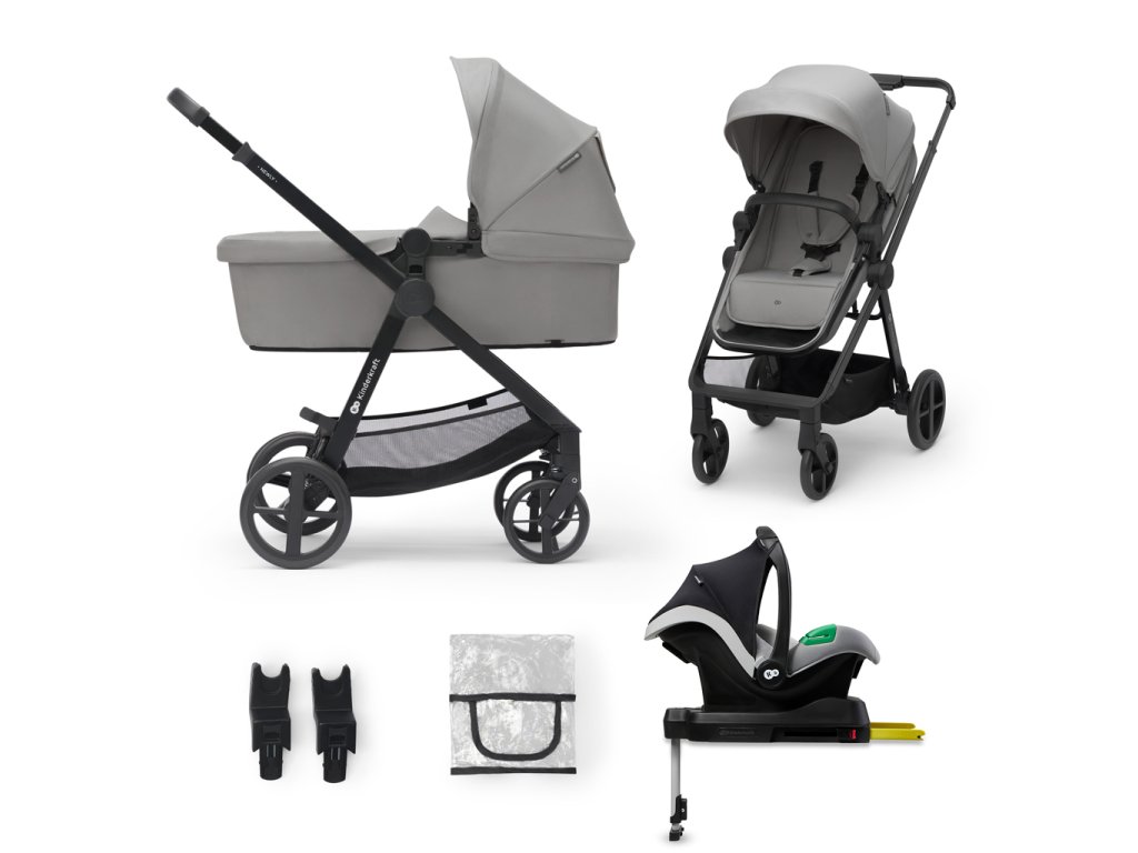 Sada obsahuje: Sedadlo 2 v 1 (vanička a sedátko), rám, nánožník, pláštěnka, autosedačka MINK PRO i-Size (40-75 cm) a adaptéry