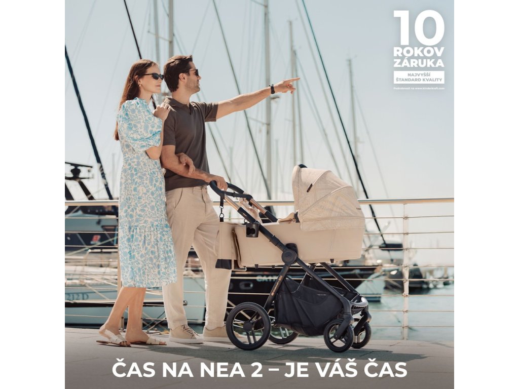 Toto je NEA 2 - multifunkční kočárek 2v1, který vzbudí váš zájem kompaktním designem a koly do každého terénu. Velká kola vám bez větších problémů umožní překonat vysoké obrubníky či nerovné městské stezky. NEA 2 je odpovědí na potřeby moderních rodičů, kteří hledají stabilní, pevný, ale přesto dobře ovladatelný kočárek. Okénko na stříšce vám umožní snadnou kontrolu, zda batole během procházky usnulo, a když se náhodou stane, že dítě kočárek zašpiní - potah na praní lehce stáhnete. Brzda STOP & RIDE umožňuje snadné zajištění a odjištění kočárku a jednoduchý systém skládání a praktická řešení jako jsou SELF STANDING nebo AUTO LOCK usnadňují přepravu a skladování.