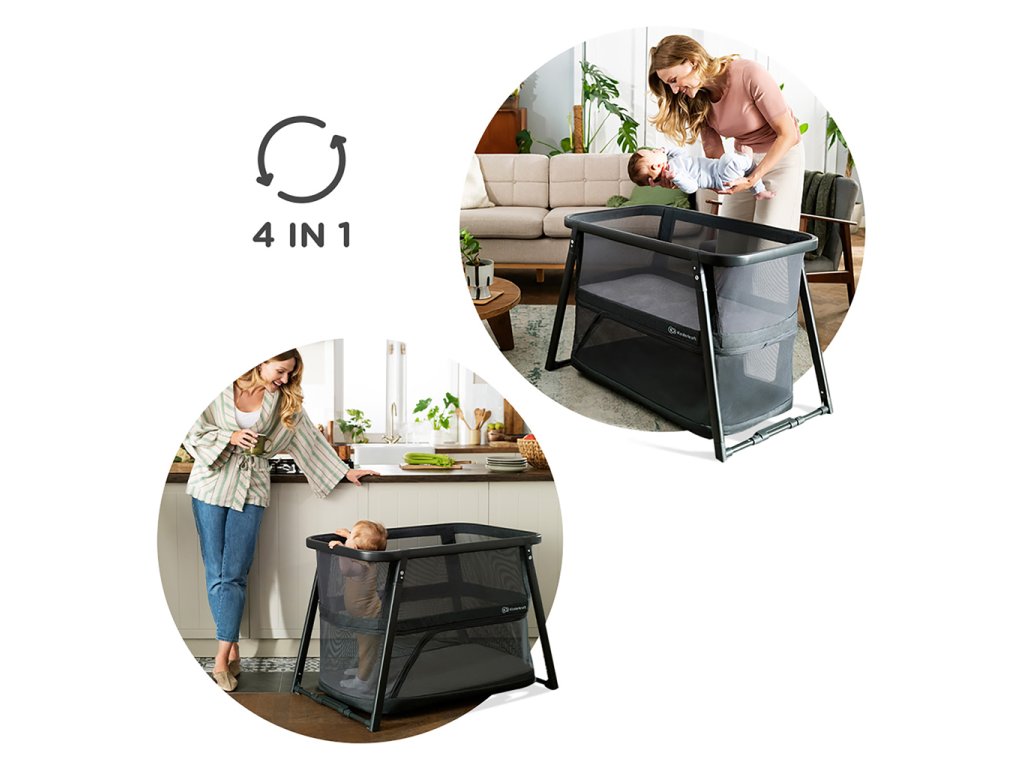 Tohle je SOFI PLUS - stylová 4 v 1 dětská postýlka, která bude ozdobou každé domácnosti. Díky designu postýlky se v ní každé dítě bude cítit výjimečně. SOFI Plus je velmi lehká a do kompaktní velikosti se skládá za pouhých 5 sekund. Kromě toho plní funkci jako dětská postýlka, kolébka, ohrádka a cestovní postýlka. Díky možnosti nastavení matrace ve 2 úrovních může se používat od prvních dnů života dítěte až do asi 3 let. Nejvyšší úroveň je určena pro nemluvňata, nastavením matrace na tuto úroveň, vytvoříte pod matrací také i praktický úložný prostor, například pro dětské doplňky. Nejnižší úroveň tvoří ohrádka, ve které si dítě může hrát. Pokud vaše dítě začne plakat, stačí přesunout zarážky a jemné kolébání dítě uklidní.