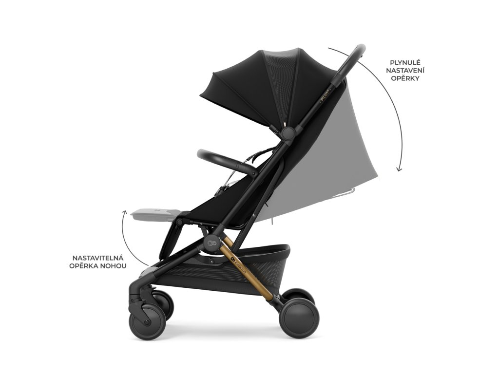 Dítě v kočárku PILOT 2 si vždy najde pohodlnou polohu – od sezení až po ležení, ideální ke zdřímnutí. Při sklopení zádové opěrky lze materiál složit, čímž se odkryje dodatečný ventilační panel, který poskytuje tepelný komfort v teplejších dnech. Toto praktické řešení činí každou cestu pohodlnou a bez stresu.