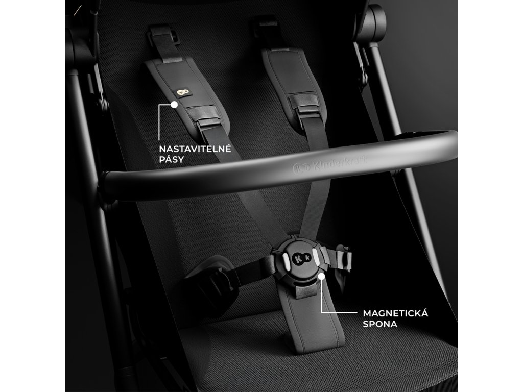 Magnetické, pětibodové bezpečnostní pásy zaručují bezpečnost a snadné používání - zapnutí a odepnutí trvá jen chvíli. Bezpečnostní pás je také vybaven pohodlným výškovým nastavením, které vám umožní přizpůsobit jej výšce dítěte nebo tloušťce oblečení, aniž byste jej museli znovu zapínat. Otočné madlo, které lze z obou stran odebrat, navíc usnadňuje nakládání a vyjímání dítěte z kočárku a poskytuje rodičům maximální komfort.