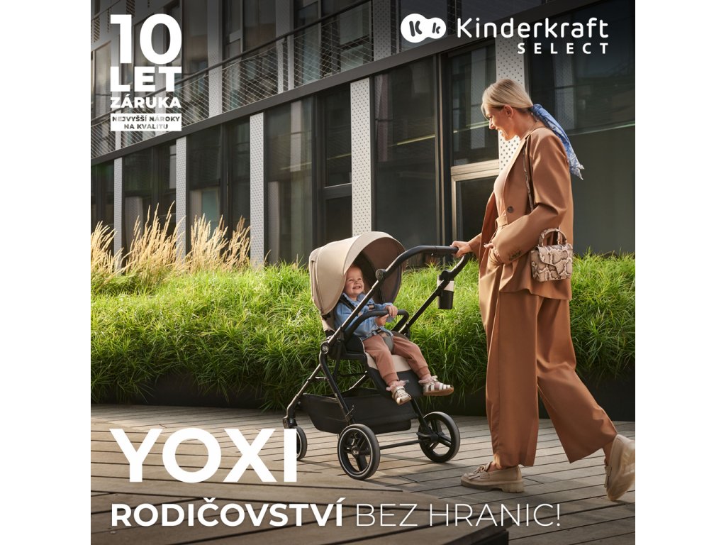 Sportovní kočárek YOXI v sobě snoubí krásný design a funkčnost. Je elegantní a obratný a díky jeho konstrukci se s ním snadno manévruje a vyhýbá překážkám, které se vám postaví do cesty. Má odpružený hliníkový rám a neprorazitelná kola, která není třeba nafukovat. Přední kola lze snadno zaaretovat pro jízdu vpřed – skvělé řešení, které se osvědčí nejen ve městě, ale také například v parku nebo na zpevněné lesní cestě.