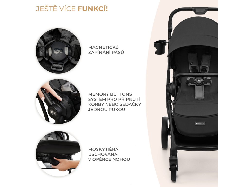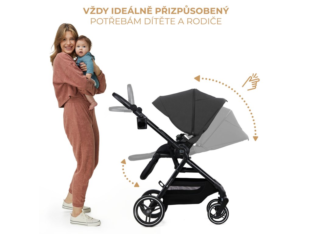 Sedačku kočárku lze připevnit po i proti směru jízdy – díky tomu vaše dítě může sledovat svět nebo se soustředit na vás, pokud ještě není připraveno na cestování po směru jízdy. Kočárek lze složit společně s připnutou sedačkou, což výrazně usnadňuje cestování.