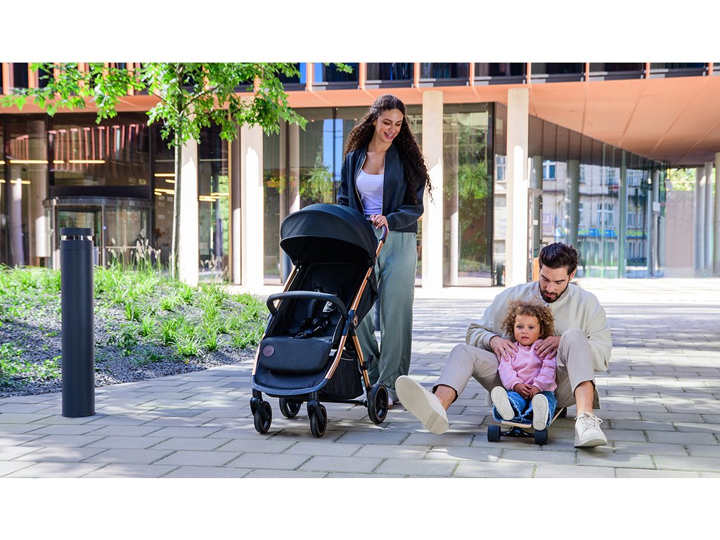 Jednoduché skládání: Kočárek je vybaven systémem auto-folding, což znamená, že po stisknutí tlačítka a uvolnění pojistky se sportovní kočárek automaticky složí do kompaktní velikosti. Vše se provádí jednou rukou.