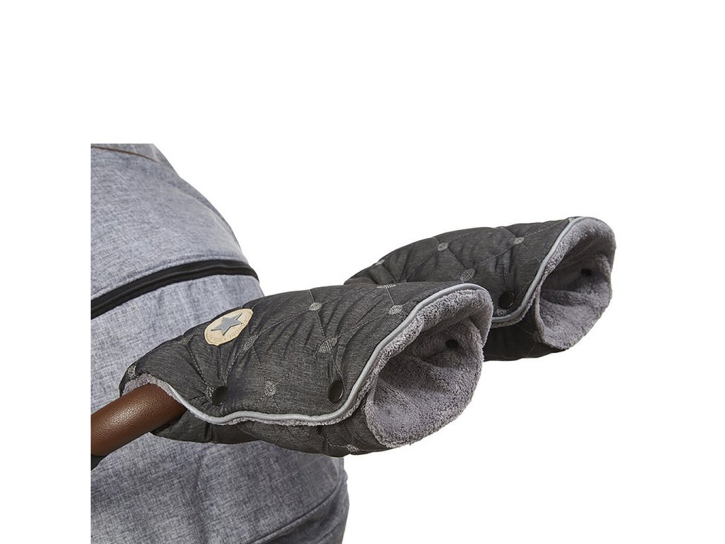 elegantní rukavice na kočárek zdobené proševem a logem s reflexní hvězdou