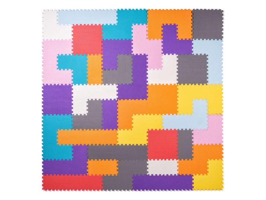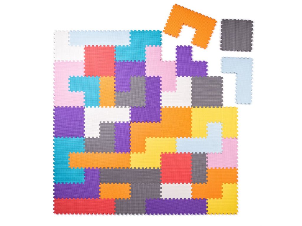 Pěnové puzzle z dílů, které do sebe musí správně zapadnout tak, aby vytvořilo čtvercovou podložku.
