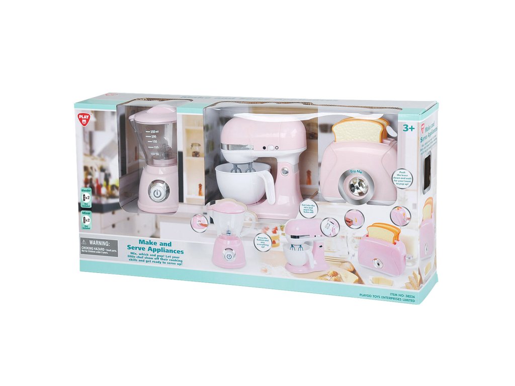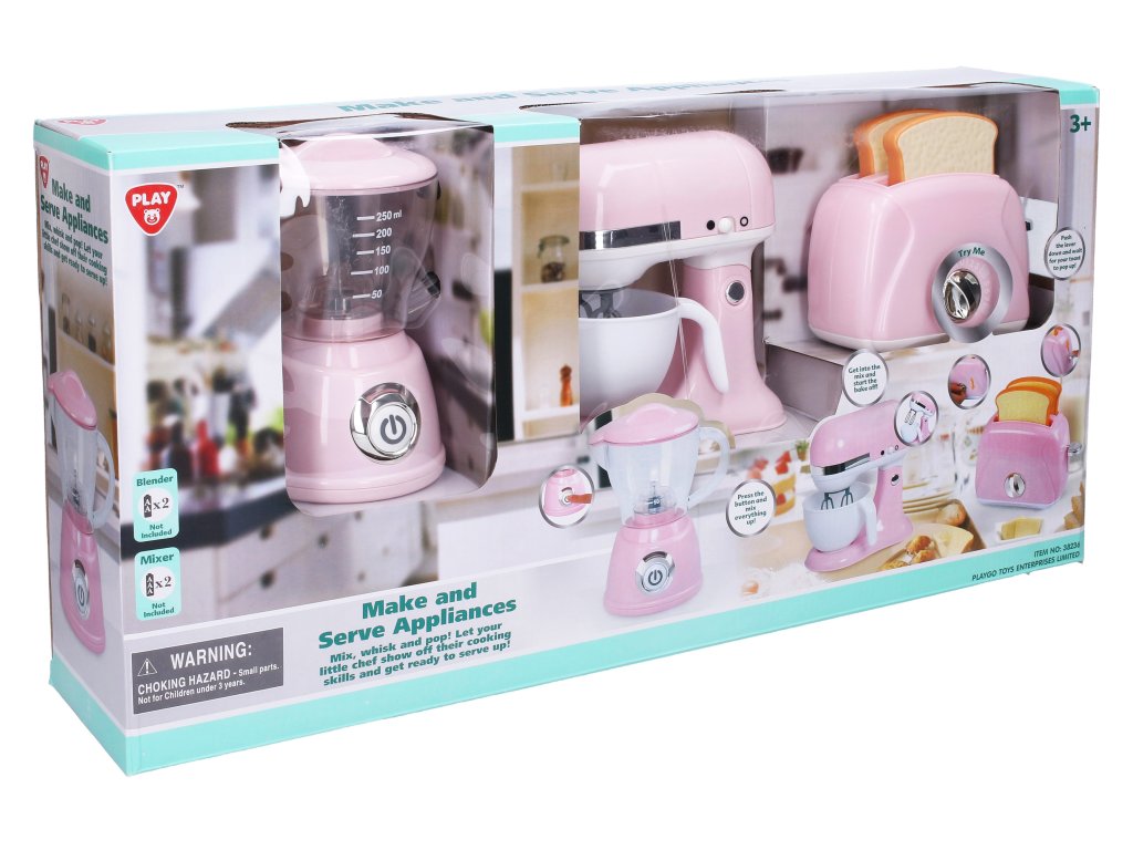 Součástí sady je topinkovač, mixér, kuchyňský robot. Světelné a zvukové efekty.