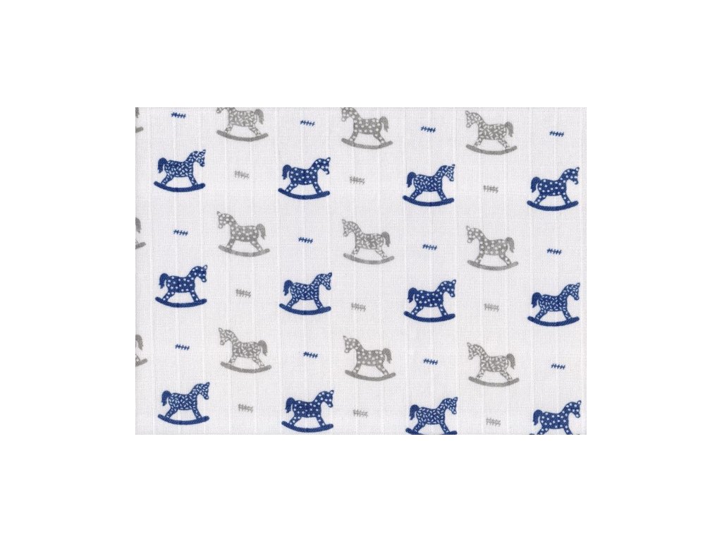 Látková plena s roztomilým potiskem modrého koníka je praktickým pomocníkem pro každodenní péči o miminko. Je vyrobena z čisté bavlněné příze, která je šetrná k jemné dětské pokožce a zajišťuje maximální pohodlí.