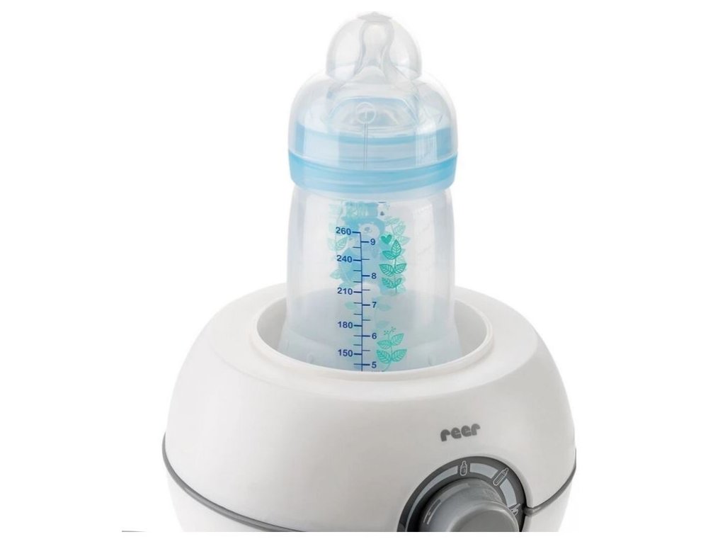 Mléko a kojenecké výživy jsou připraveny k použití během několika minut s jemným oteplováním ve vodní lázni a díky jednoduchému ovládání zařízení s plynulým ovládáním termostatu. Pro všechny běžné dětské láhve a nádoby o průměru až 70 mm. Včetně misky s měřicí stupnicí.