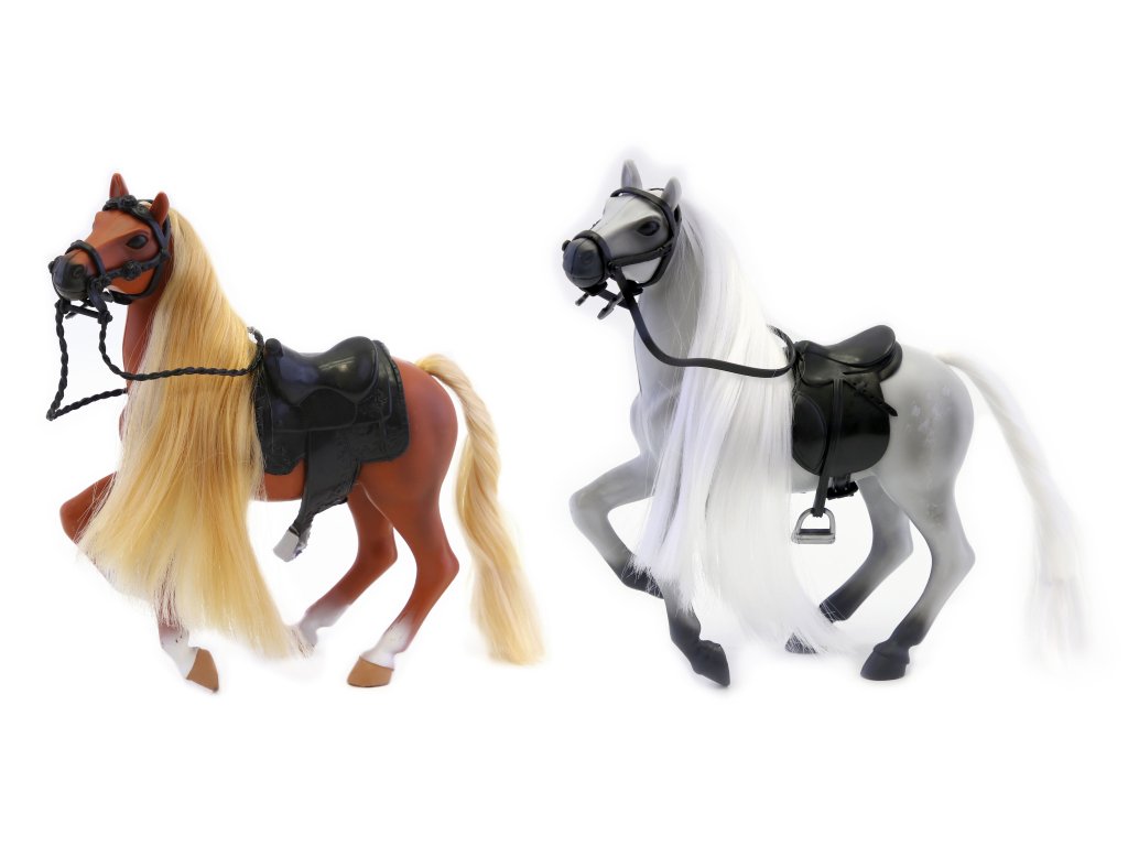 Royal Breeds Koník s ohradou. Velikost 17 cm. Obsahuje také různé příslušenství. Zadní strana obalu se otevírá jako vrata do stájí. 2 varianty - hnědý, šedý.Doplňkové parametry