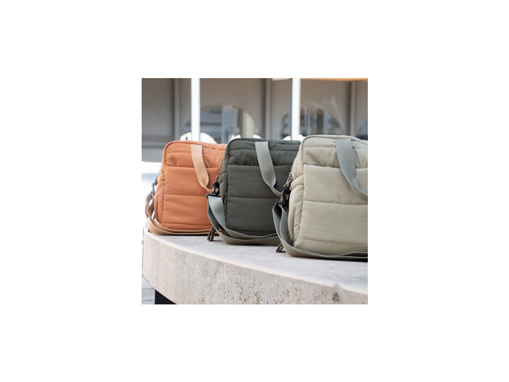 Univerzální a praktická taška, kterou můžete nosit třemi způsoby: přes rameno, v ruce nebo připevněnou na kočárku pomocí dvou popruhů. Prošívaný design dodává elegantní a módní vzhled, který se hodí ke každému outfitu.