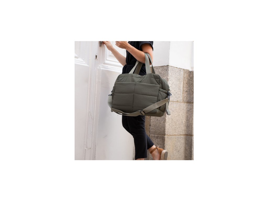 Univerzální a praktická taška, kterou můžete nosit třemi způsoby: přes rameno, v ruce nebo připevněnou na kočárku pomocí dvou popruhů. Prošívaný design dodává elegantní a módní vzhled, který se hodí ke každému outfitu.