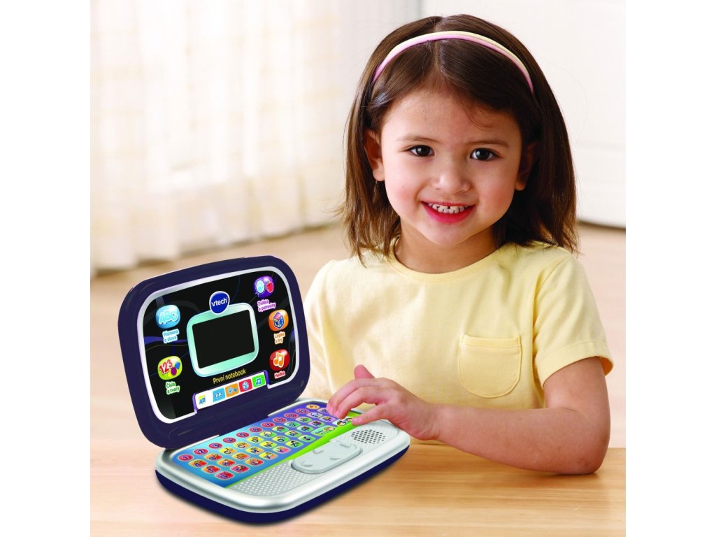 Vtech První notebook je sklopný dětský počítač imitující klasický notebook pro dospělé. Je určen pro děti od 3 do 7 let. Součástí notebooku je více než 20 výukových a zábavných aktivit. Vtech První notebook naučí poznávat 26 základních písmen české (ve slovenské verzi slovenské) abecedy. A to jak velká tak i malá písmena včetně užití ve slovech a jejich výslovnosti. V dalších variantách hry naučí notebook děti všechna čísla do deseti, učí je porovnávat i počítání. Děti vybízí k aktivitě například při hledání a počítání různých tvarů, ryb nebo ovoce a zeleniny. V neposlední řadě budou děti poznávat stopy zvířat, a jaké zvuky zvířata vydávají. Veškeré získané vědomosti shrnují poutavým způsobem různé testy.