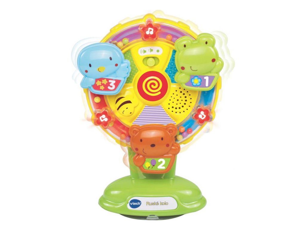Povozit zvířátka na Ruském kole, tak to může být úžasná zábava! Hudební a vzdělávací hračka pro děti již od 6 měsíců s bezpečnostní přísavkou zabraňující nechtěnému sklouznutí ze stolu. Nenásilnou formou učí děti poznávat čísla, barvy i zvířátka. Podporuje správný vývoj jemné motoriky. Zábavné fráze rozšiřují slovní zásobu dítěte. Roztáčením kola a mačkáním tlačítek děti objevují zákonitosti akce a reakce. Přátelský hlas a zábavné fráze podporují zkoumání. Zahraje 10 melodií a zazpívá 5 českých písniček