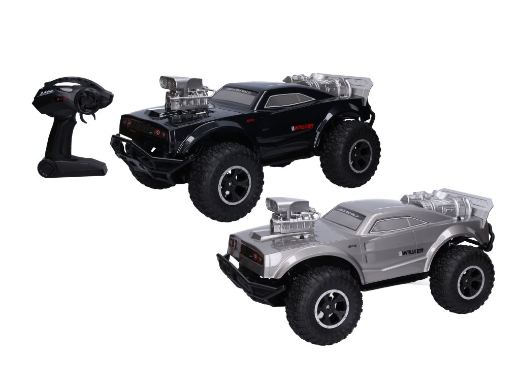 Přepínač ON/OFF na spodní straně auta a na ovladači. USB kabel součástí.