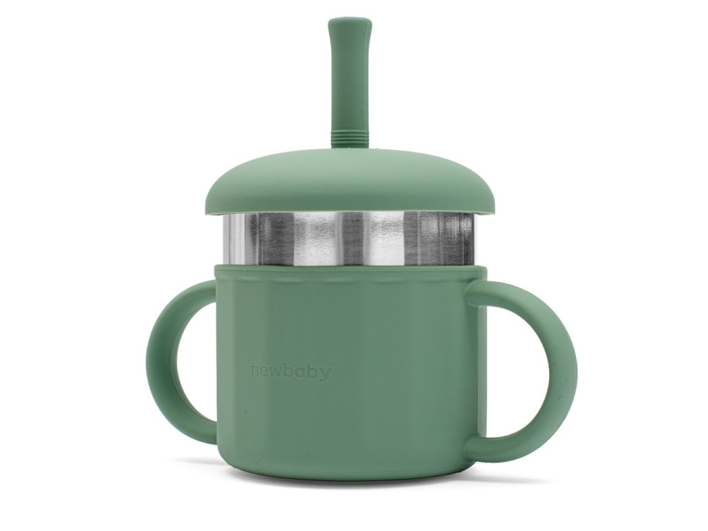 "Silikonový hrneček 2 v 1 značky New Baby, který spojuje moderní design s funkčností, ideální pro děti již od prvních dnů života (0+). Vlastnosti produktu: Prémiový materiál: Hrneček je vyroben z 50 % z měkkého silikonu a z 50 % z nerezové oceli, což zajišťuje trvanlivost a bezpečné používání. Multifunkčnost: Vyměnitelný náustek – možnost použití se slámkou nebo s pítkem podle potřeb dítěte. Objem 220 ml: Perfektní na první nápoje vašeho miminka. Ergonomická držadla: Speciálně navržená držadla uDoplňkové parametry