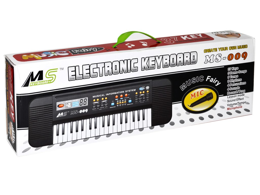 Piano s mikrofonem se kterým se váš malý hudebník zabaví na celé dny. Piano umí zahrát 5 demo songů, 8 přednastavených tónů a 8 rytmů. Také nechybí nahrávání, díky kterému si může malý skladatel songy zaznamenat a znovu přehrát. Samozřejmostí je kontDoplňkové parametry