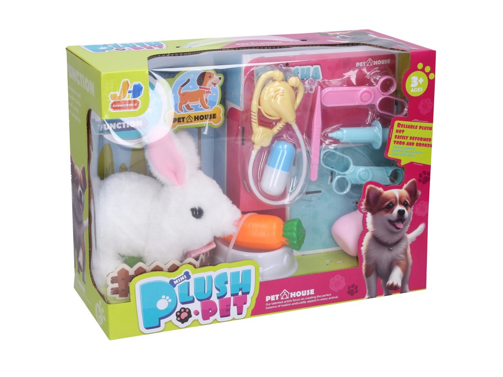 Obsahuje: králíka, misku, mrkev, lahvičku, fonendoskop, injekci, nůžky, pinzetu.