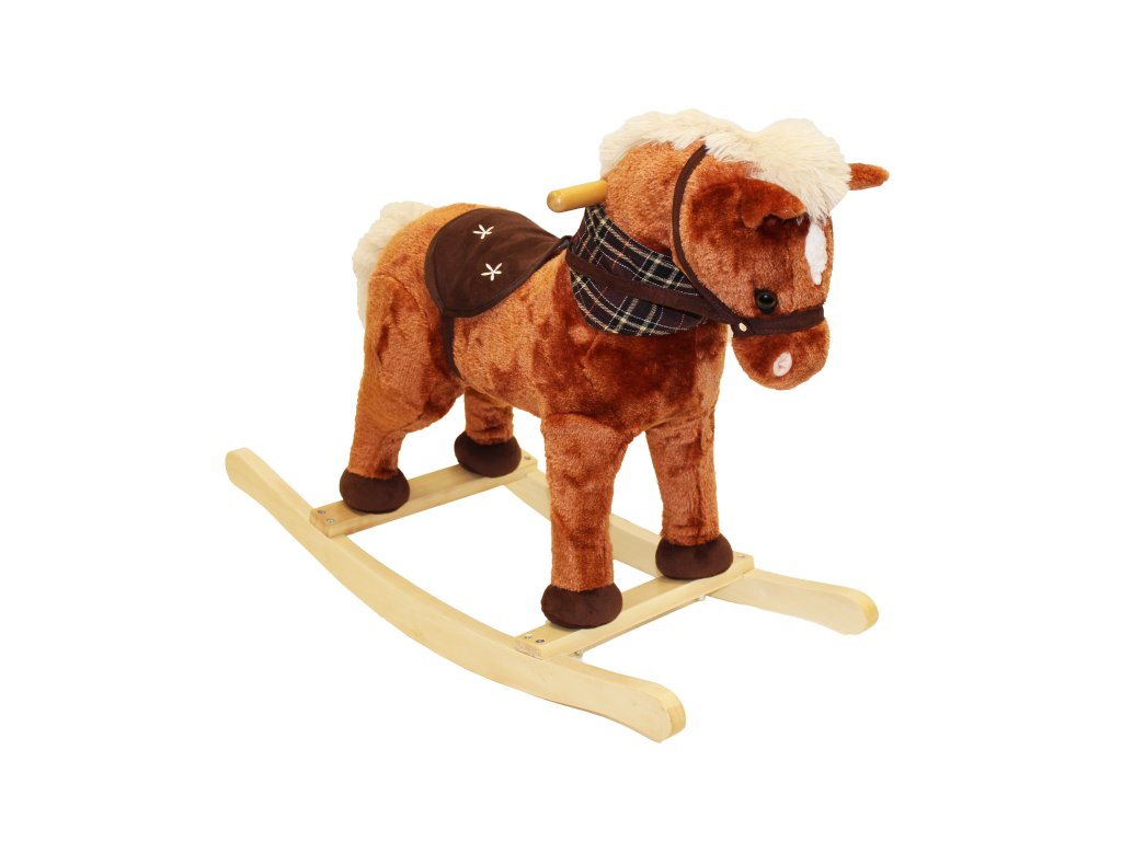 Kůň houpací s efekty hnědák. Rozměry 71x30x58 cm. Vydává zvukové efekty. Aktivace tlačítkem v uchu. Přihrádka na baterie se nachází na břiše koně. 3xAG13/LR44 součástí.Doplňkové parametry