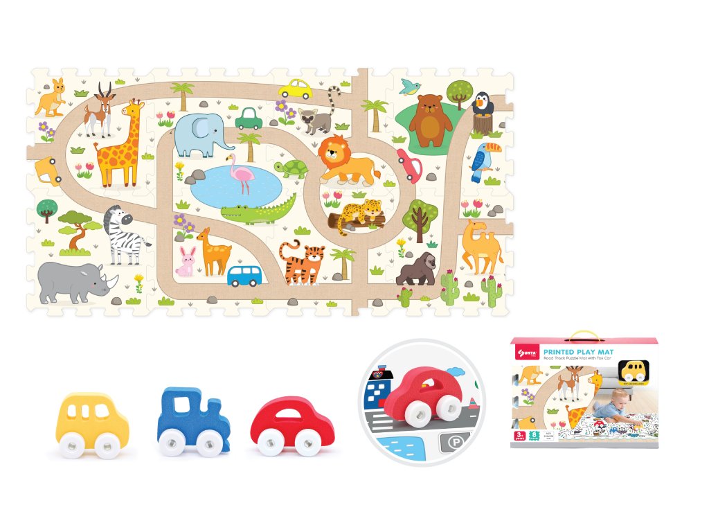 Měkké bloky s autíčkem safari 8ks. Obsahuje 8 bloků 31,5x31,5x1cm, autíčko s volnými koly.Doplňkové parametry