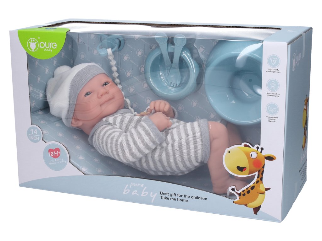 Miminko s nočníkem. Velikost panenky 35cm. Obsahuje: panenku, nočník, dudlík, misku s příborem.Doplňkové parametry