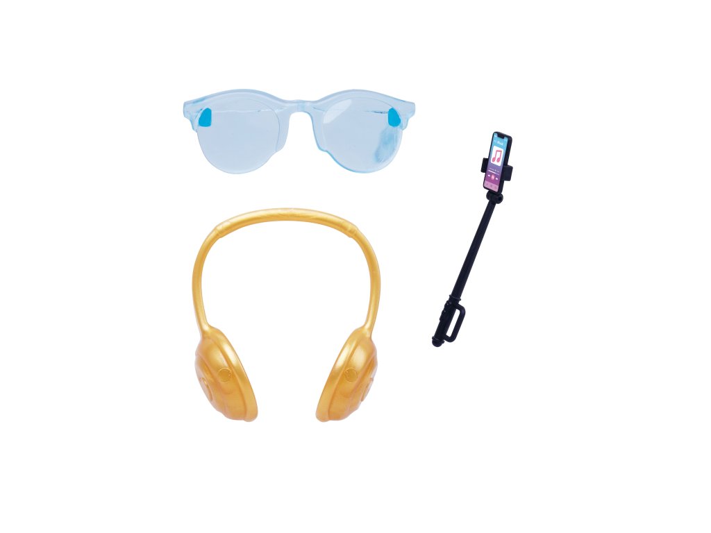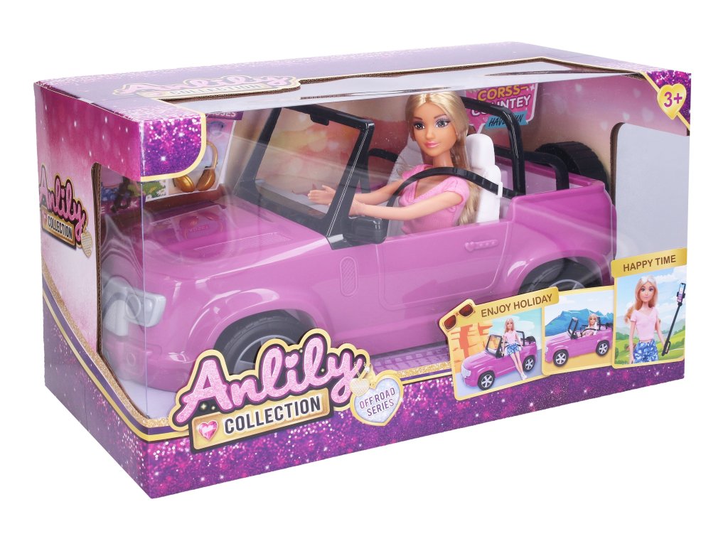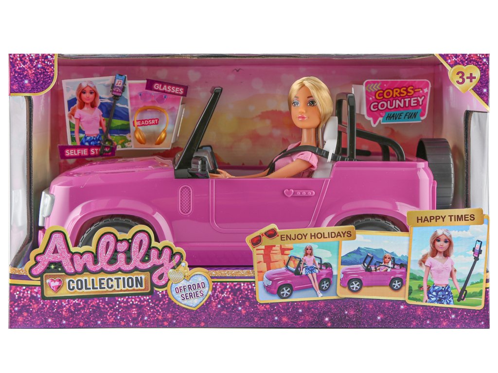 Panenka s autem. Velikost panenky 30 cm. Součástí auto, selfie tyč a sluchátka.Doplňkové parametry
